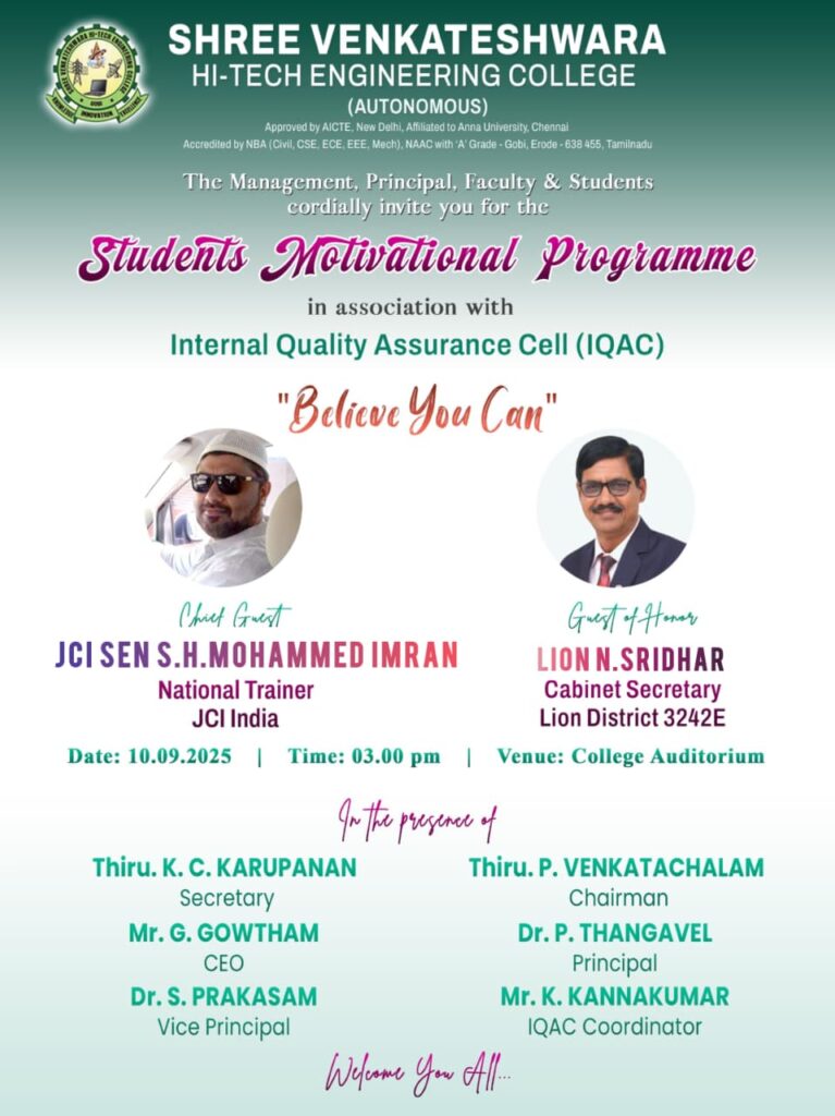 Students Motivational Programme in association with Internal Quality Assurance Cell (IQAC)