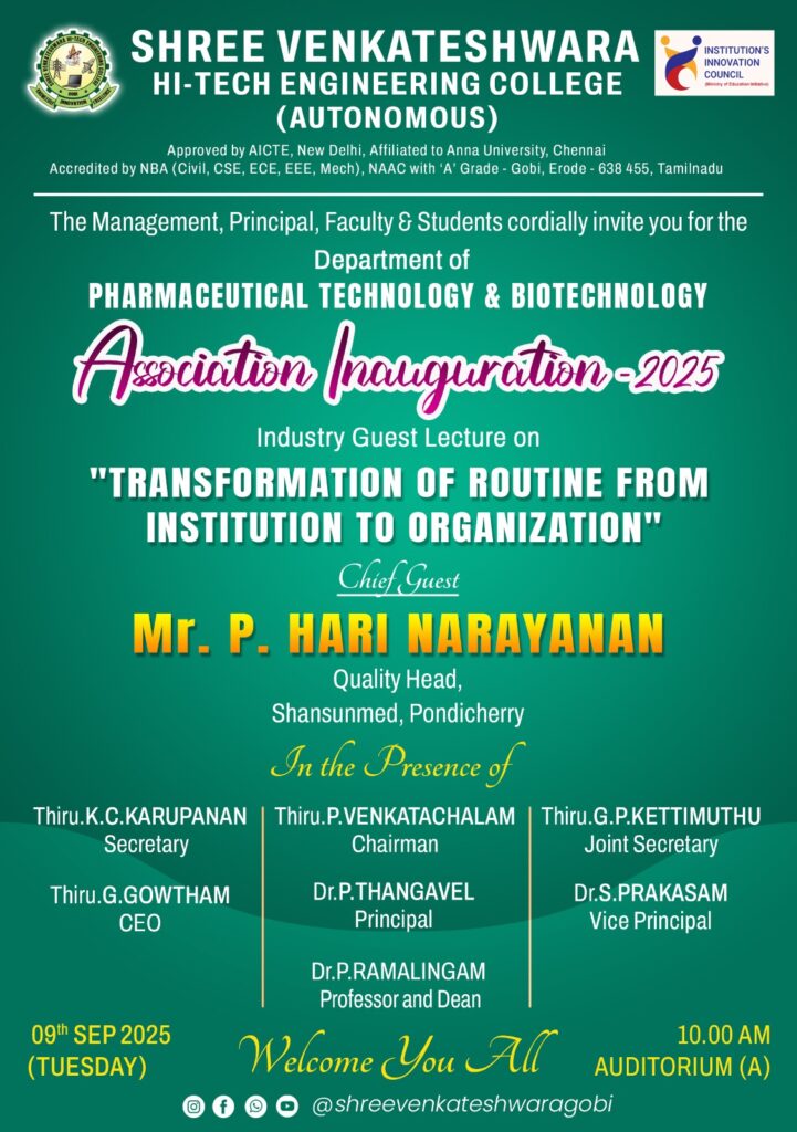 PHARMACEUTICAL TECHNOLOGY & BIOTECHNOLOGY Association Inauguration-2025