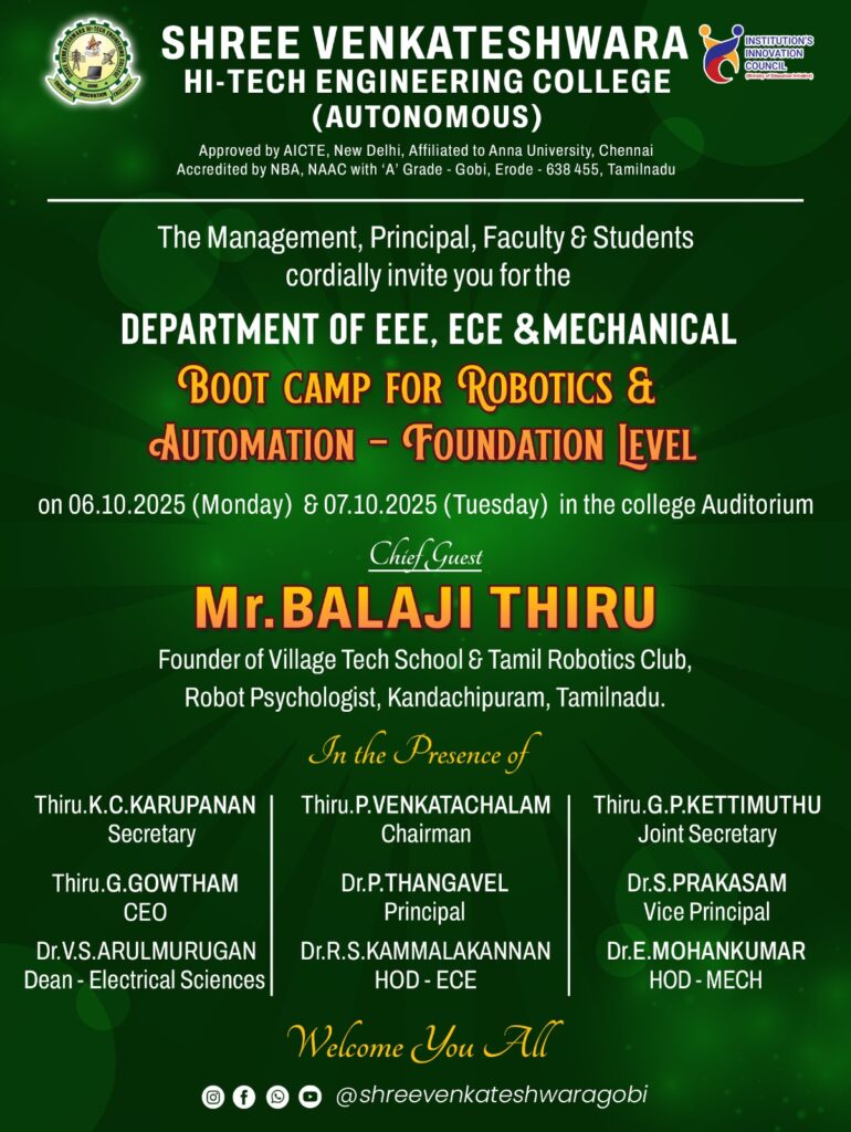 BOOT CAMP FOR ROBOTICS & AUTOMATION – FOUNDATION LEVEL